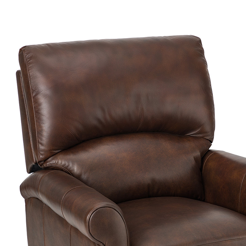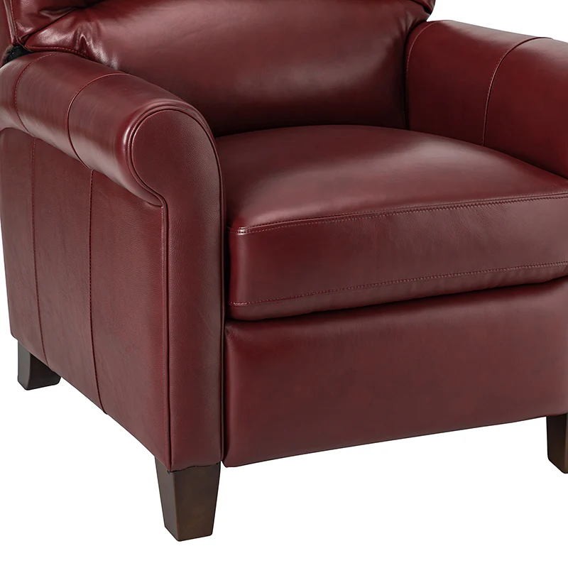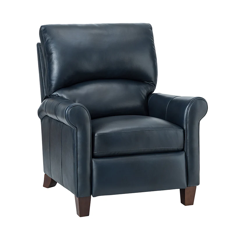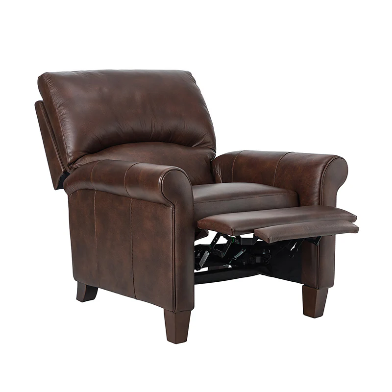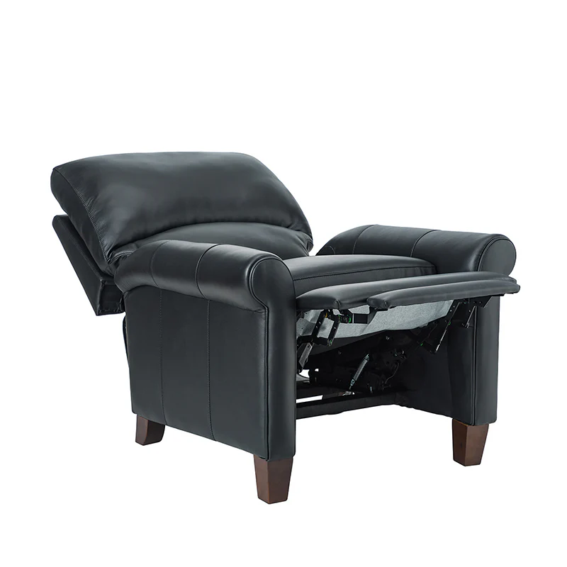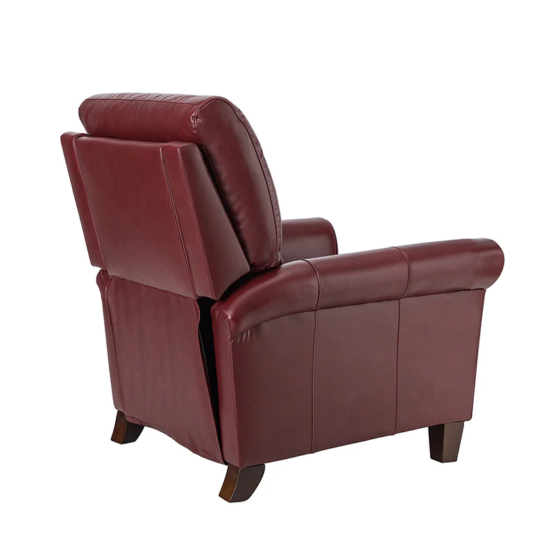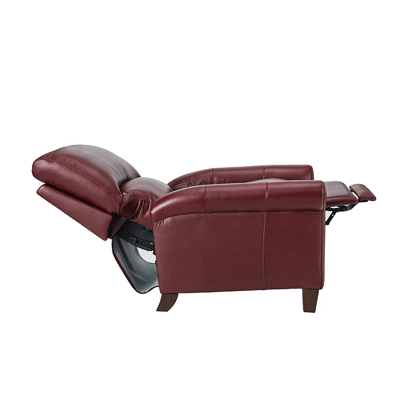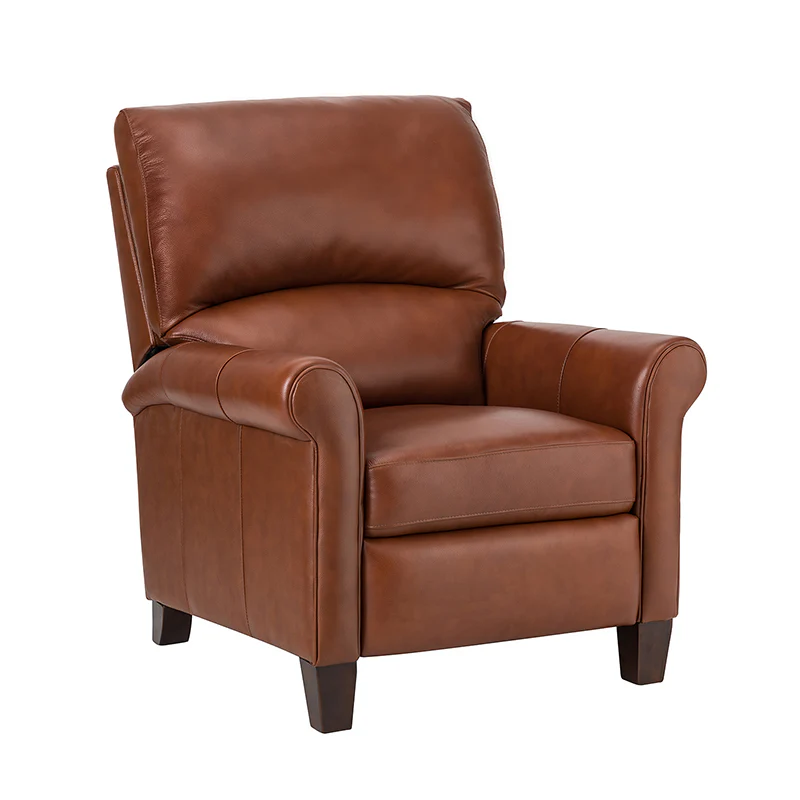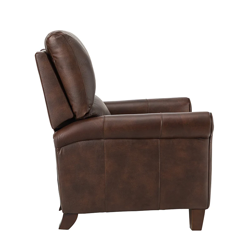 This recliner combines modern and light luxury elements. This recliner fits in whether it's your living room, office, home office, or study. Let you enjoy everything the room has to offer. This piece is outfitted with solid wood legs and a hardwood frame for ensured strength and stability as well as a natural rustic aesthetic. Enjoy a sturdy foundation with a traditional look that fits wonderfully in a variety of settings. A sturdy, supportive seat cushion balances softness and durability, making any room or home office feel more comfortable and inviting. Moreover, all seating area is upholstered with genuine leather. You can use your body to touch the skin-friendly experience of genuine leather. The recliner will relax every cell in your body and improve the quality of your daily life and rest. You can relax by reclining immediately when you push forward. The recliner makes an easy addition to any room as a captivating, versatile piece of decor.