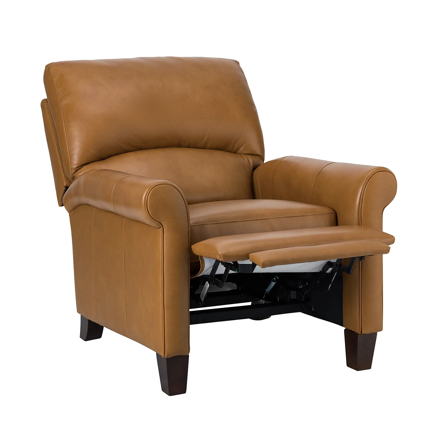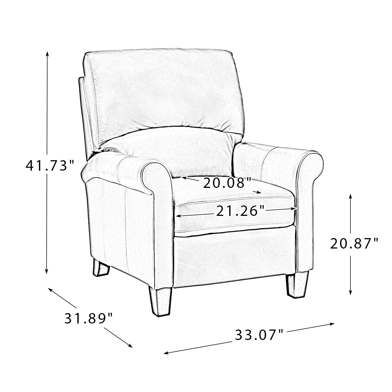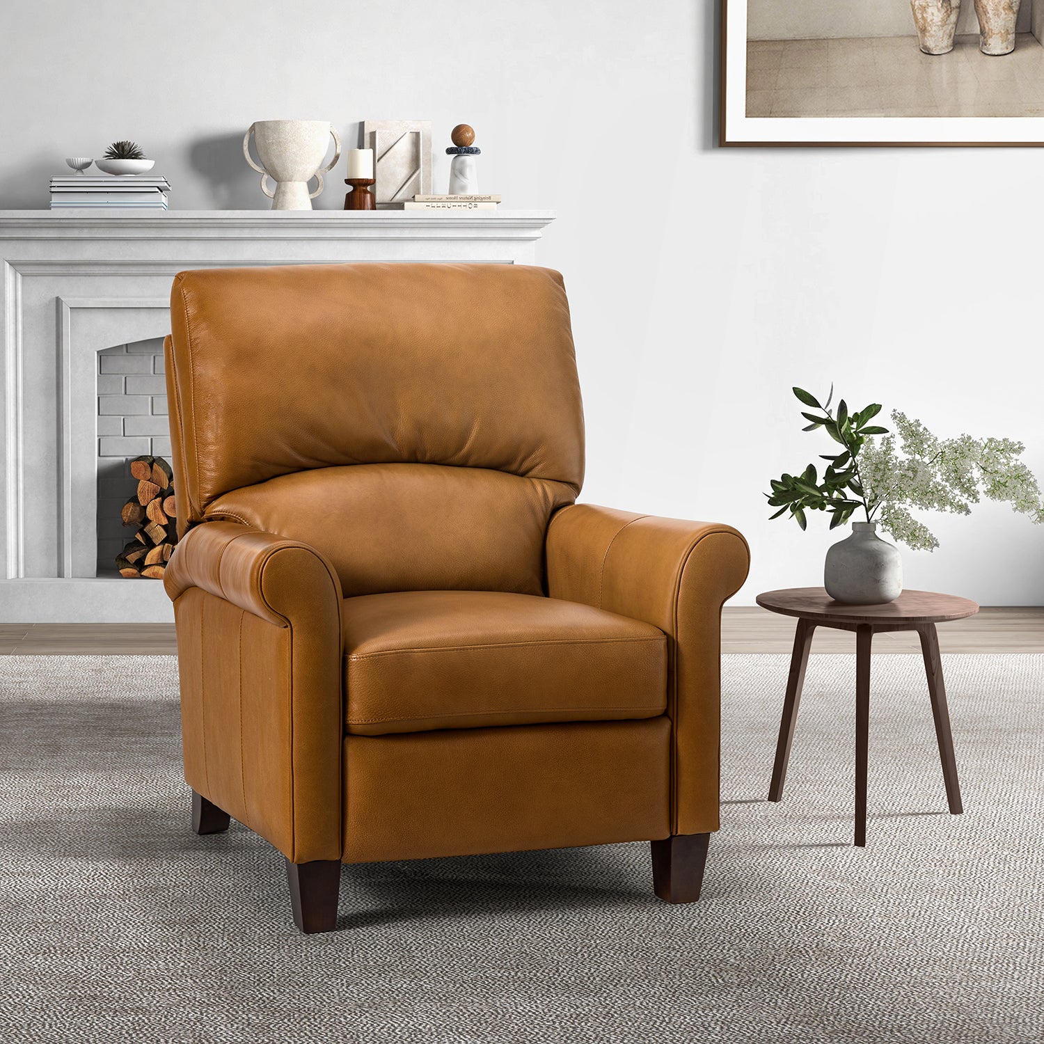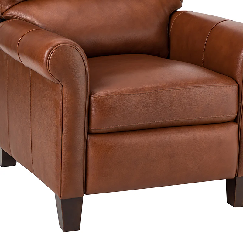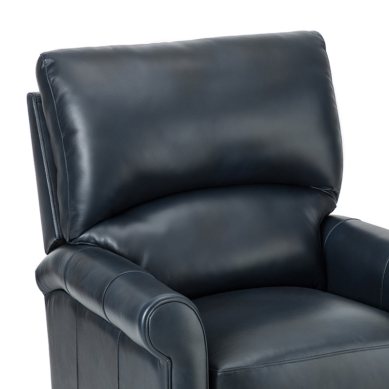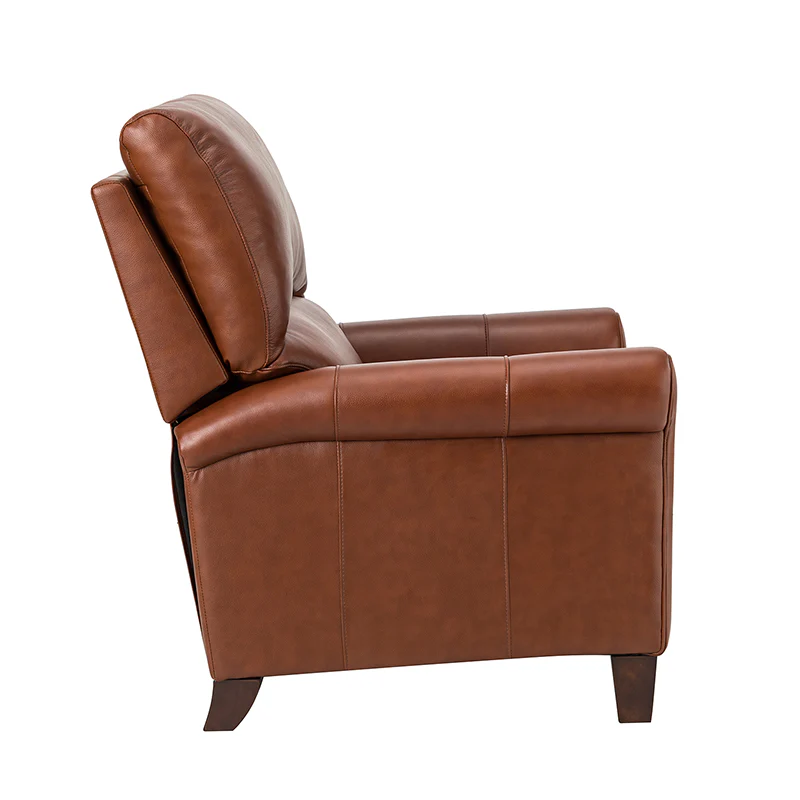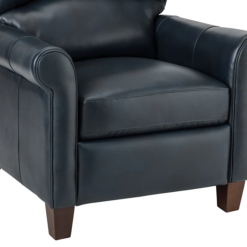 This recliner combines modern and light luxury elements. This recliner fits in whether it's your living room, office, home office, or study. Let you enjoy everything the room has to offer. This piece is outfitted with solid wood legs and a hardwood frame for ensured strength and stability as well as a natural rustic aesthetic. Enjoy a sturdy foundation with a traditional look that fits wonderfully in a variety of settings. A sturdy, supportive seat cushion balances softness and durability, making any room or home office feel more comfortable and inviting. Moreover, all seating area is upholstered with genuine leather. You can use your body to touch the skin-friendly experience of genuine leather. The recliner will relax every cell in your body and improve the quality of your daily life and rest. You can relax by reclining immediately when you push forward. The recliner makes an easy addition to any room as a captivating, versatile piece of decor.