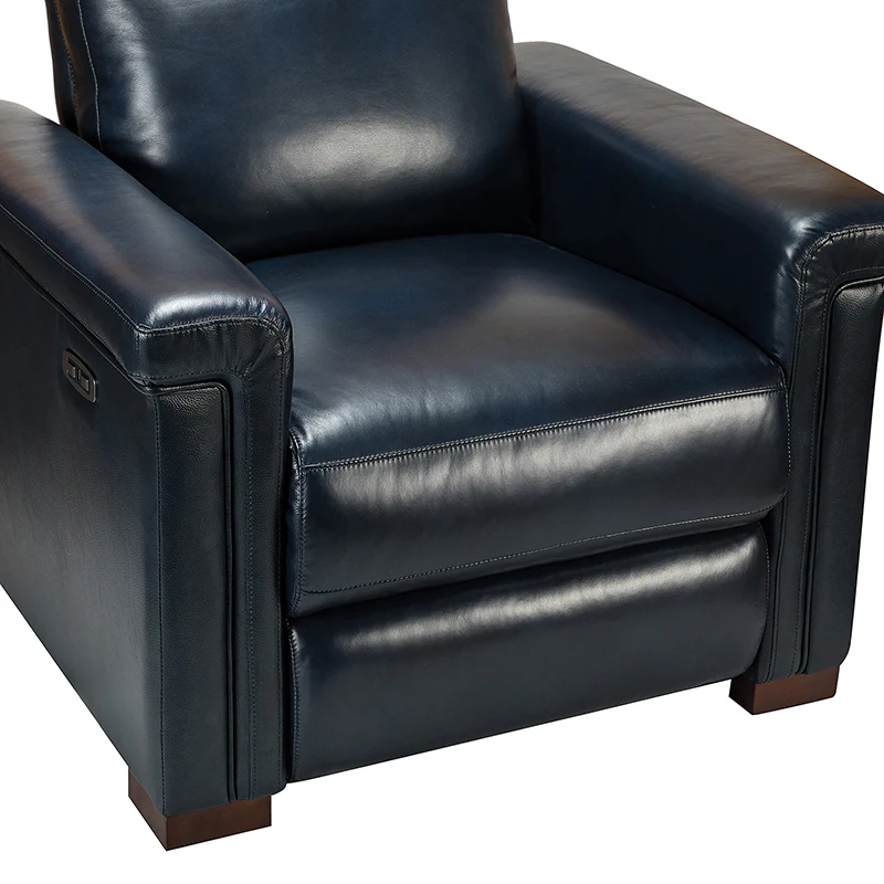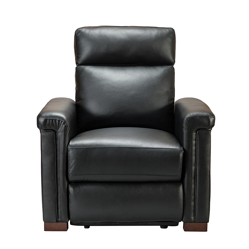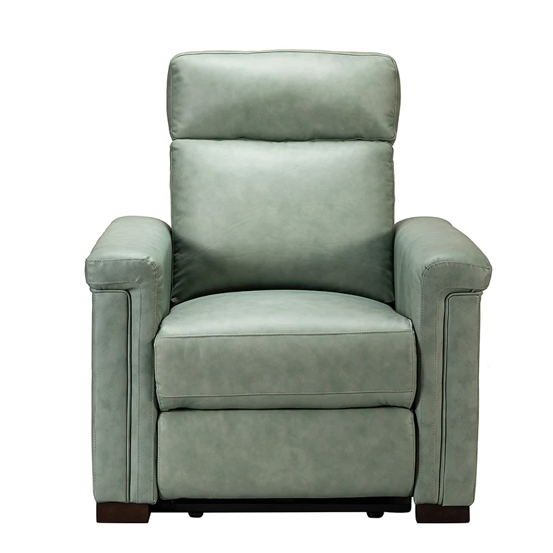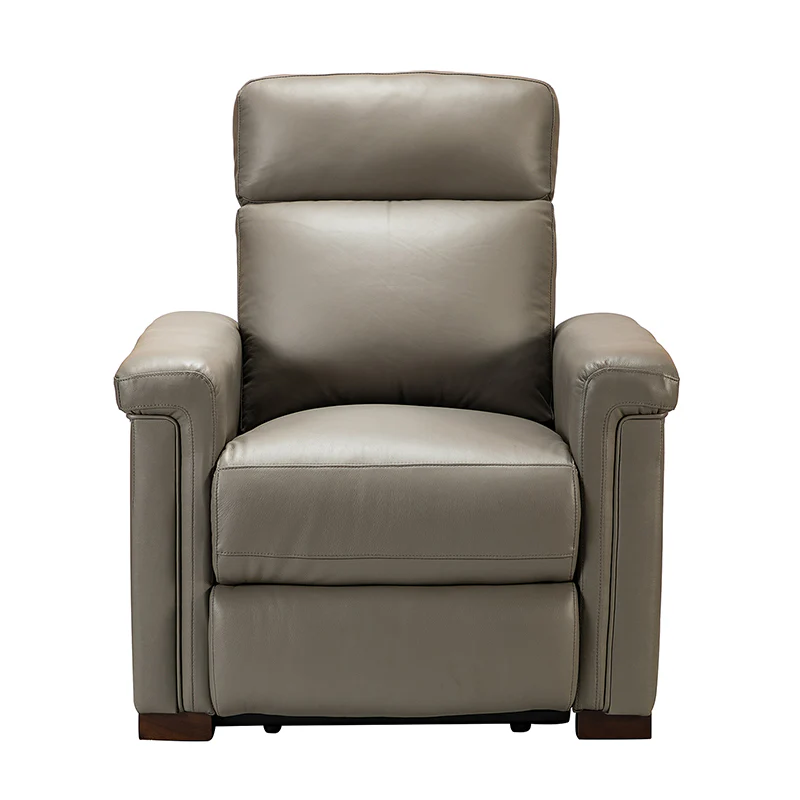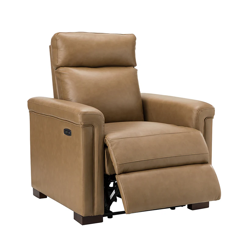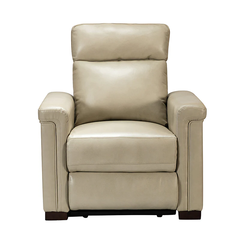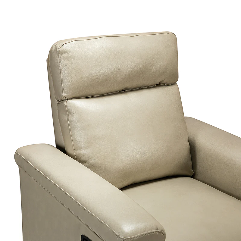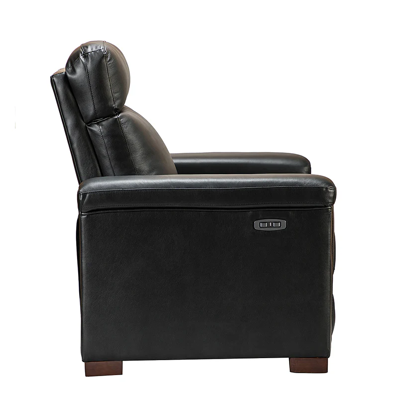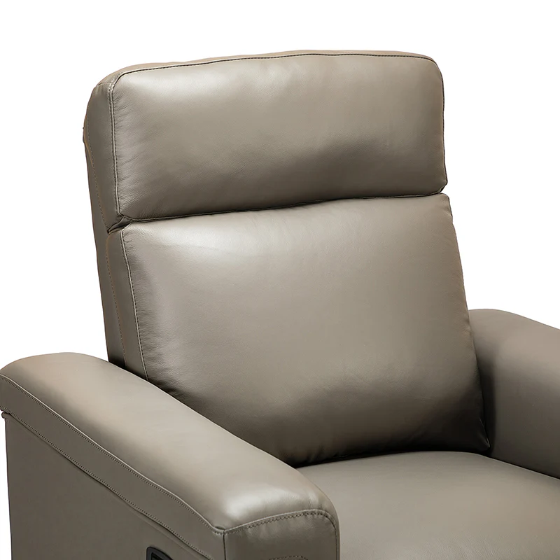Whether catching your favorite shows after a long day or kicking back with the latest bestseller on your day off, this power cigar recliner offers the perfect perching point in your home. Its two cushions padded back, foam, and polyester fiber-filled frame exude ease and comfort when both upright and in the reclining position, while the built-in sinuous spring increases stability. Crafted from solid and manufactured wood and upholstered with luxurious breathable genuine top layer leather, this comfy power recliner shows a modern appearance for simple yet fashionable charm in any living room. Including a 2.1-meter-long wire to connect the electricity, it provides an adjustable reclining angle of a maximum of 150 degrees and paired USB port, you can fix it at any angle within the range and enjoy its convenient charging function. Cooperating with the hidden footrest to relax your joints after a long day of work, it is the best place to rock away from the day's pressure after work.