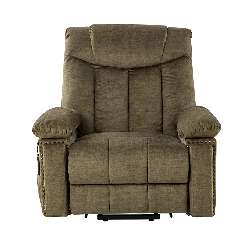 The power recliner is crafted with older adults and elderly users in mind, featuring an electric lift for easy standing. This oversized chair offers independent control of the backrest and footrest for personalized comfort. It includes a discreetly integrated cup holder and armrest storage for convenient access to essentials. Equipped with USB and Type-C charging ports, it ensures your devices stay powered. Side storage pockets add extra convenience, while the electric headrest allows effortless adjustment to your preferred position. Complete with massage and heating functions, it enhances relaxation and therapeutic benefits. This lift-assist recliner combines functionality, comfort, and modern technology, catering to those seeking support and comfort alike.