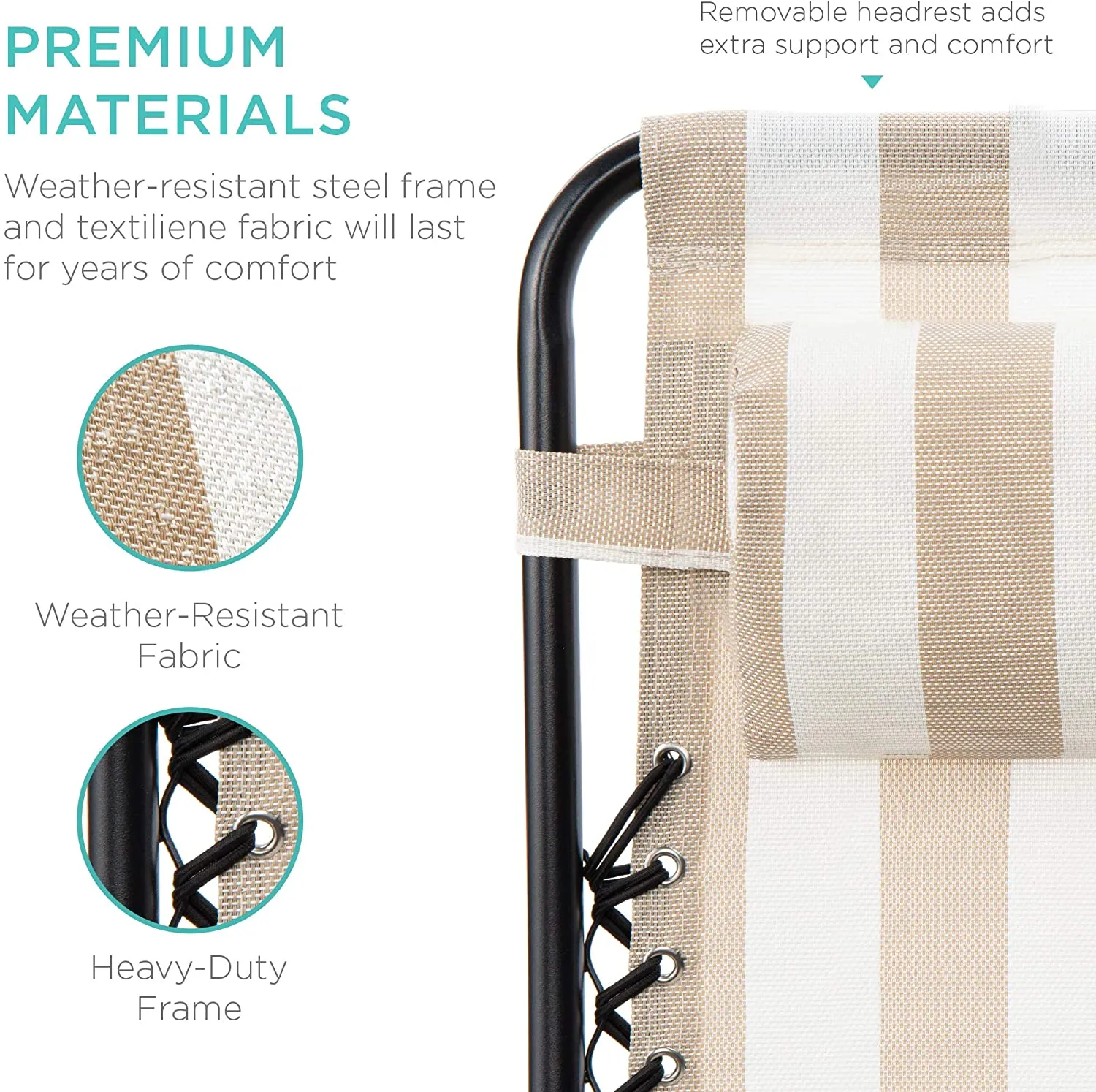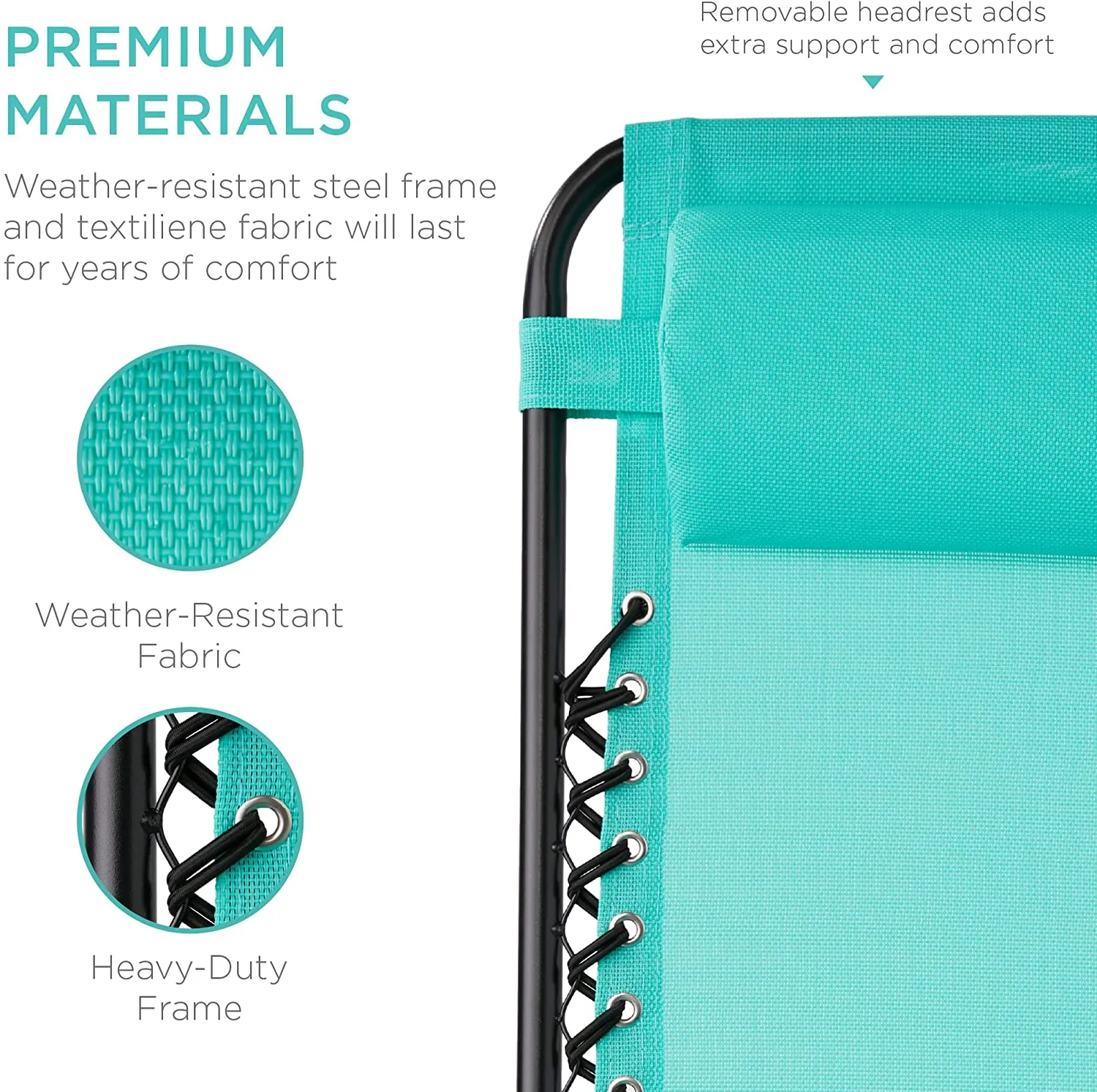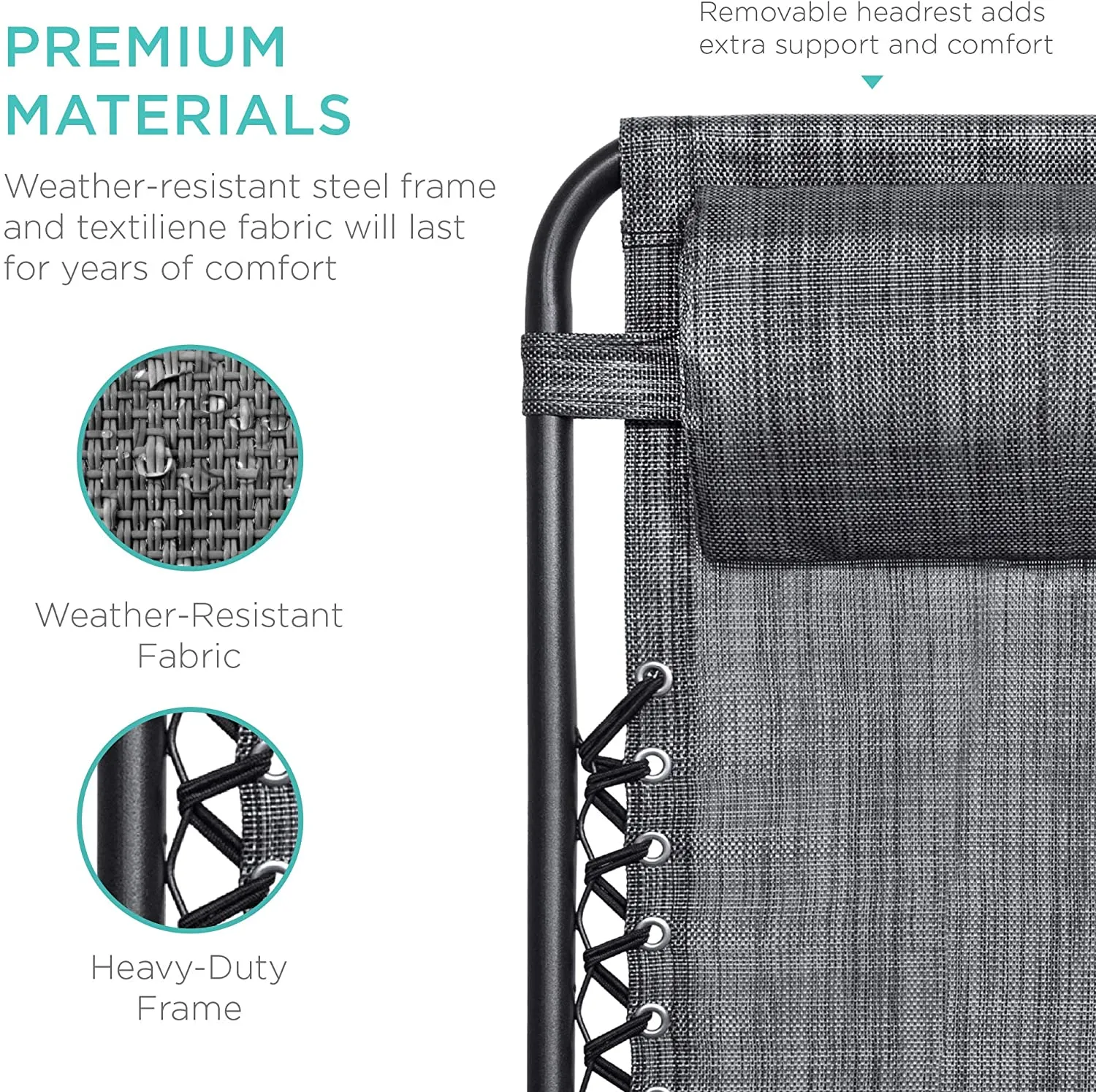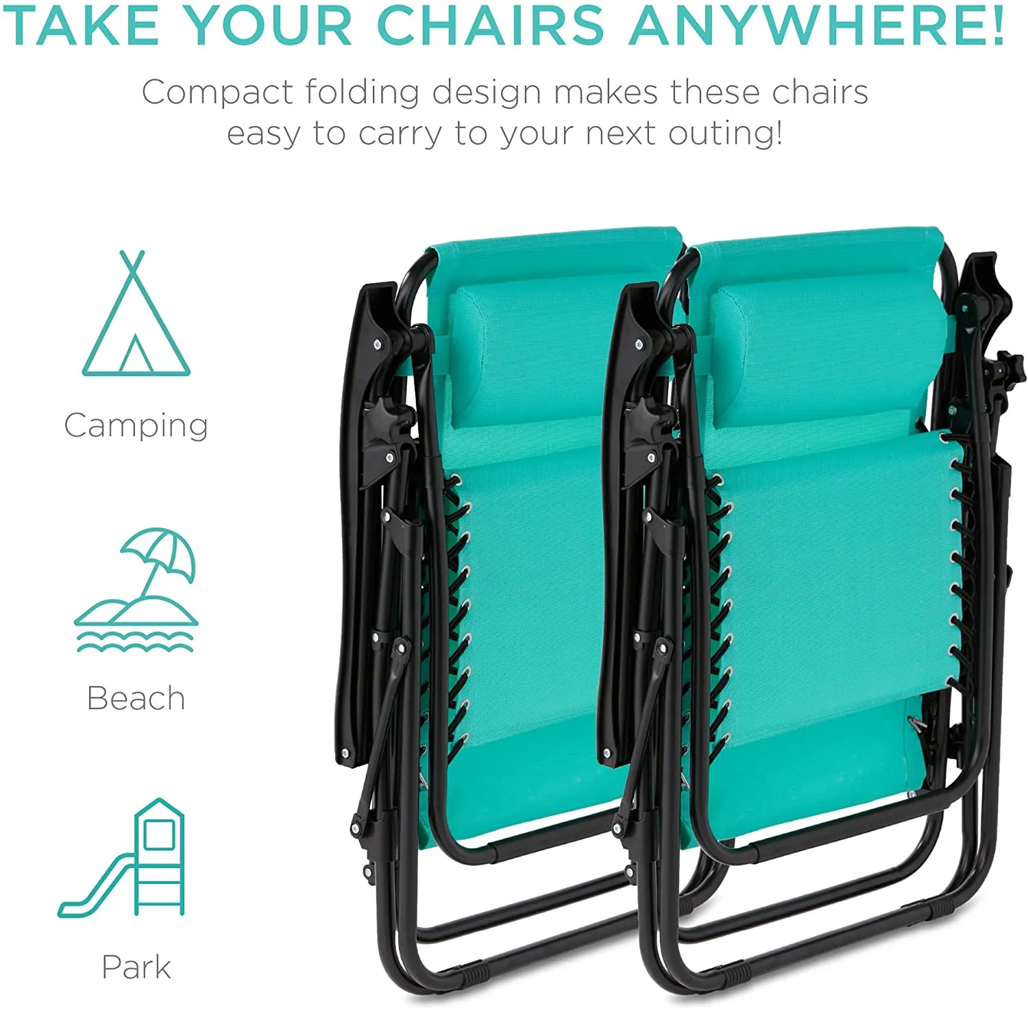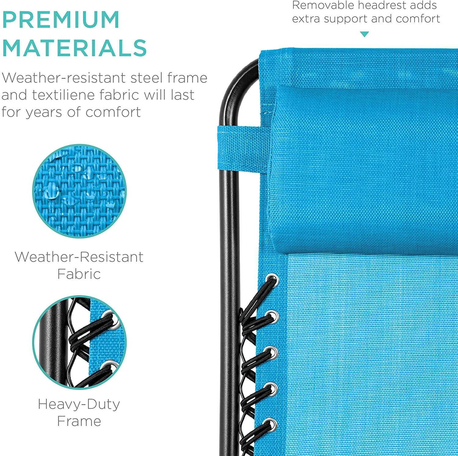 Two-piece zero-gravity lounge chair with two removable cup holders, made of durable steel pipe and excellent breathability PVC-coated polyester Fabric, which can bear a maximum weight of 350lb. It can easily adjust the angle of the recliner through the plum lock as if the weightless sitting experience allows you to release your body pressure and enjoy a rare leisure time. The foldable design allows you to carry it easily and freely to go to the beach, courtyard, or forest lawn, which is very convenient.