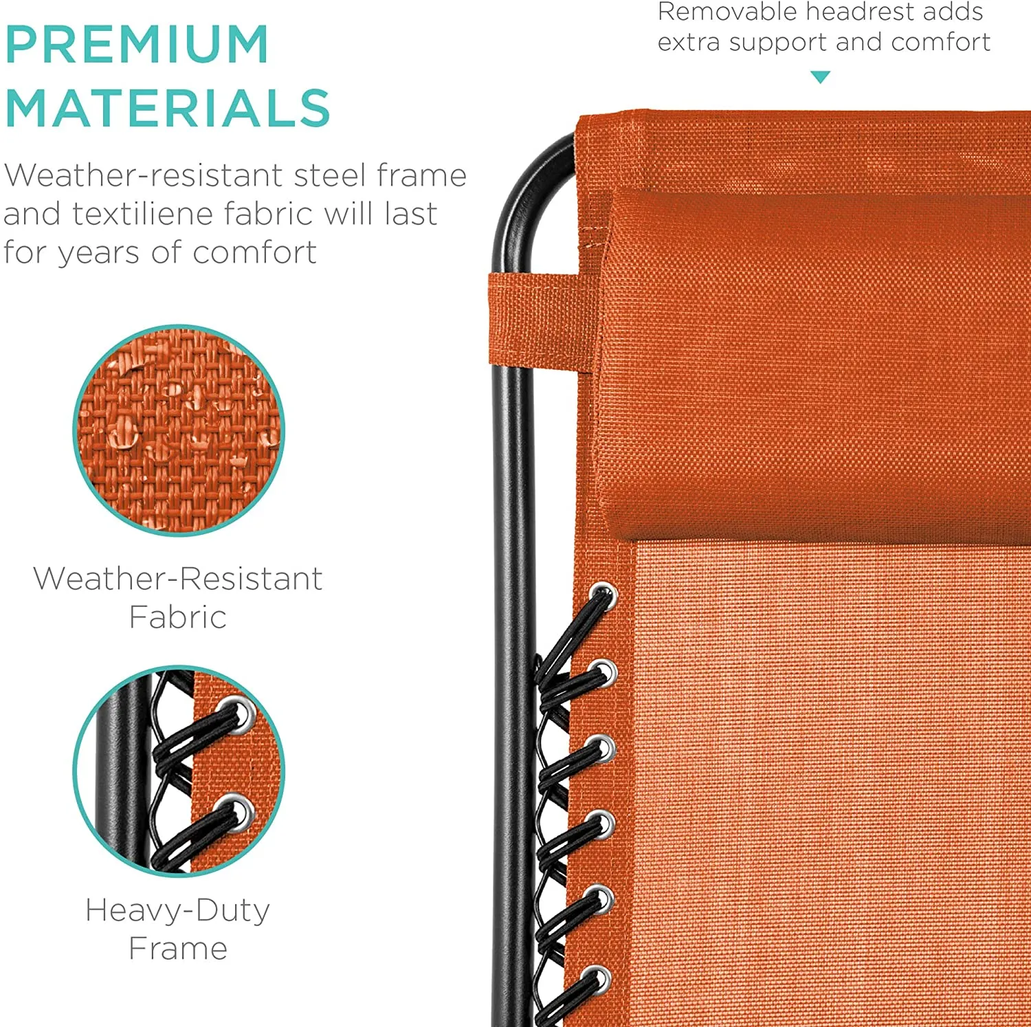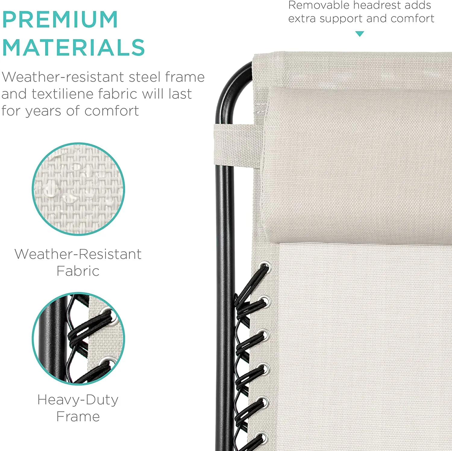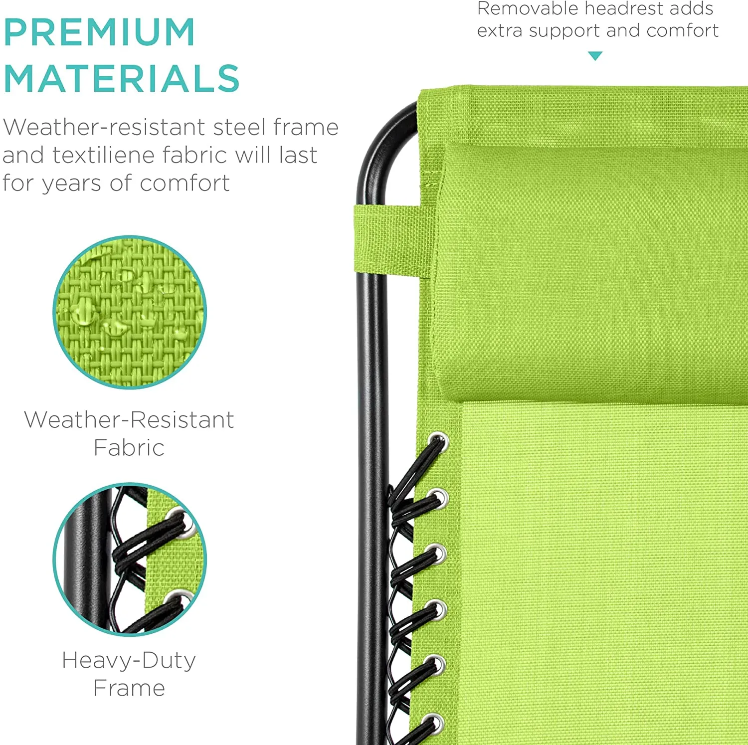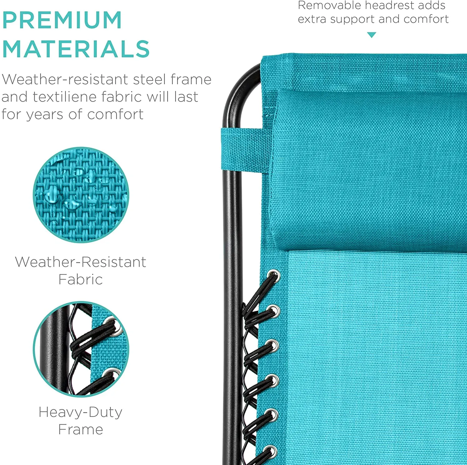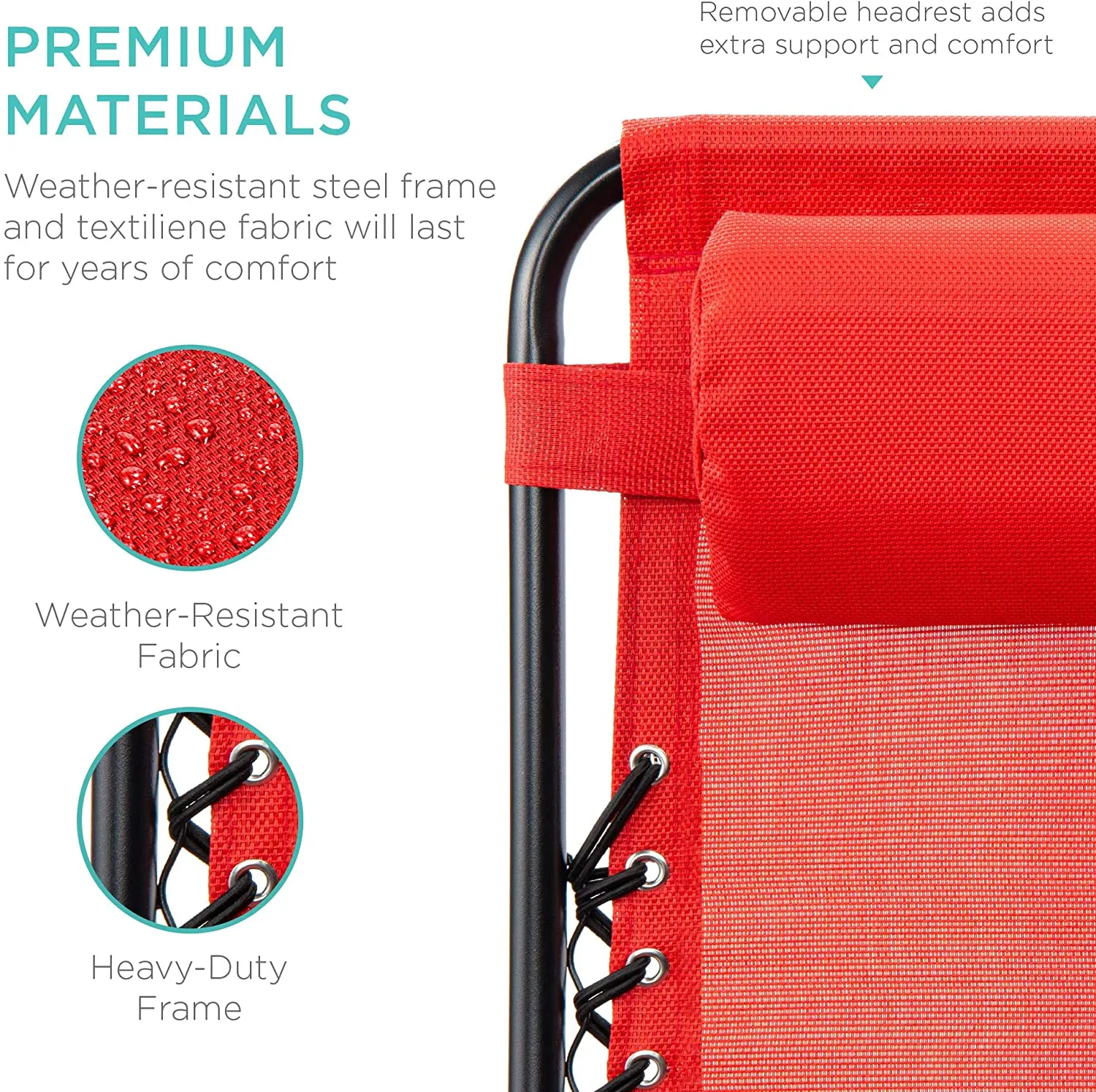 Two-piece zero-gravity lounge chair with two removable cup holders, made of durable steel pipe and excellent breathability PVC-coated polyester Fabric, which can bear a maximum weight of 350lb. It can easily adjust the angle of the recliner through the plum lock as if the weightless sitting experience allows you to release your body pressure and enjoy a rare leisure time. The foldable design allows you to carry it easily and freely to go to the beach, courtyard, or forest lawn, which is very convenient.