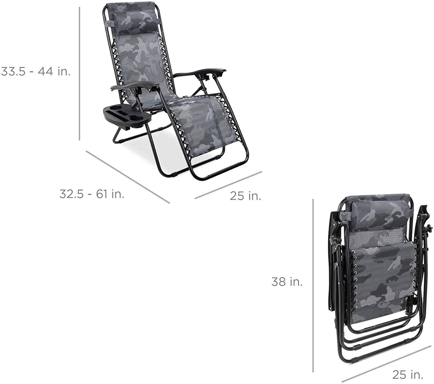 - REMOVABLE, ADJUSTABLE HEADRESTS: Includes a removable, padded headrest for an extra element of adjustable comfort; OPEN DIMENSIONS: 32.5"-61"(L) x 25"(W) x 33.5"-44"(H); FOLDED DIMENSIONS: 38"(L) x 25"(W) x 6"(H)