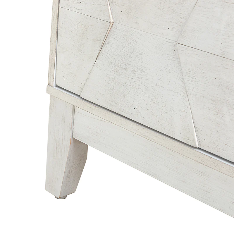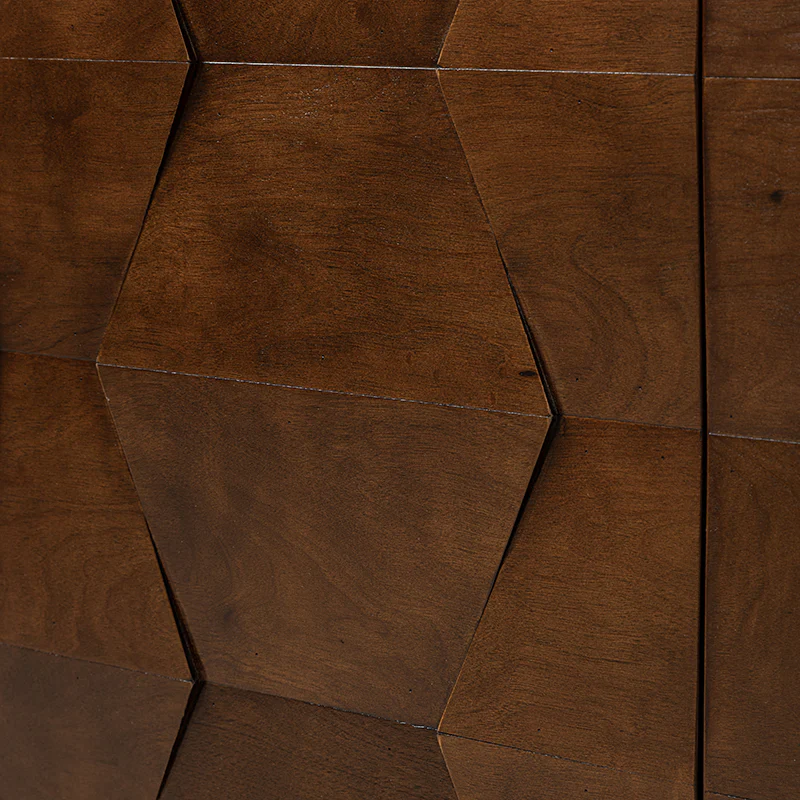 Introduce stylish storage solutions to your space with this 3-door storage cabinet. Designed with contemporary flair, this sideboard seamlessly combines functionality and aesthetics. The 3 push-to-open doors open to unveil ample storage space, and the adjustable shelf inside ensures the effortless organization of your belongings. Constructed from kiln-dried solid and engineered wood, it stands gracefully on adjustable tapered legs. We especially admire the subtle visual texture added by the hexagonal embellishments on the front panels. Whether placed in the dining area, living room, or hallway, this versatile 3-door sideboard brings a perfect blend of practicality and charm to your home decor.