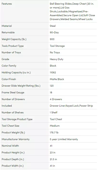 • INDUSTRIAL 41 IN. W X 21.5 IN. D 4-DRAWER TOP TOOL CHEST IN MATTE BLACK